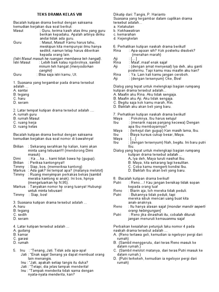 Contoh Soal Uraian Tentang Drama Kelas 8