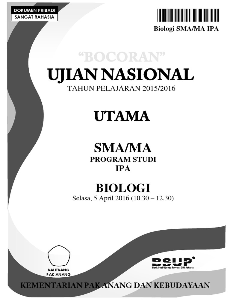 20201125 Nah oleh karena itulah mari kita belajar mengenai biologi melalui soal-soal biologi SMA yang akan dibagikan pada hari ini. Download Soal UN SMA Tahun 2016 Semua Mata Pelajaran Naskah Asli 11 comments Ujian Nasional bukan lah hal yang bisa kita anggap sepele meskipun BSNP setiap tahun mengeluarkan kisi-kisi Ujian Nasional namun terkadang muncul jenis soal yang tidak bisa kita prediksi. Sesuai judulnya udah ketahuan lah ya apa yang bakal lo dapatkan dari artikel ini.