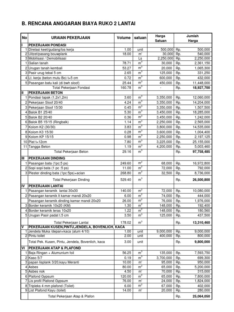 RENCANA ANGGARAN BIAYA RUKO 3 LANTAI Total Pekerjaan Lantai satuanURAIAN PEKERJAANNo I. Itulah sedikit gambaran umum atau contoh dalam membuat perhitungan biaya bangun rumah 2 lantai yang paling sederhana. Download Gratis Rab Rumah Excel goodsitesight.