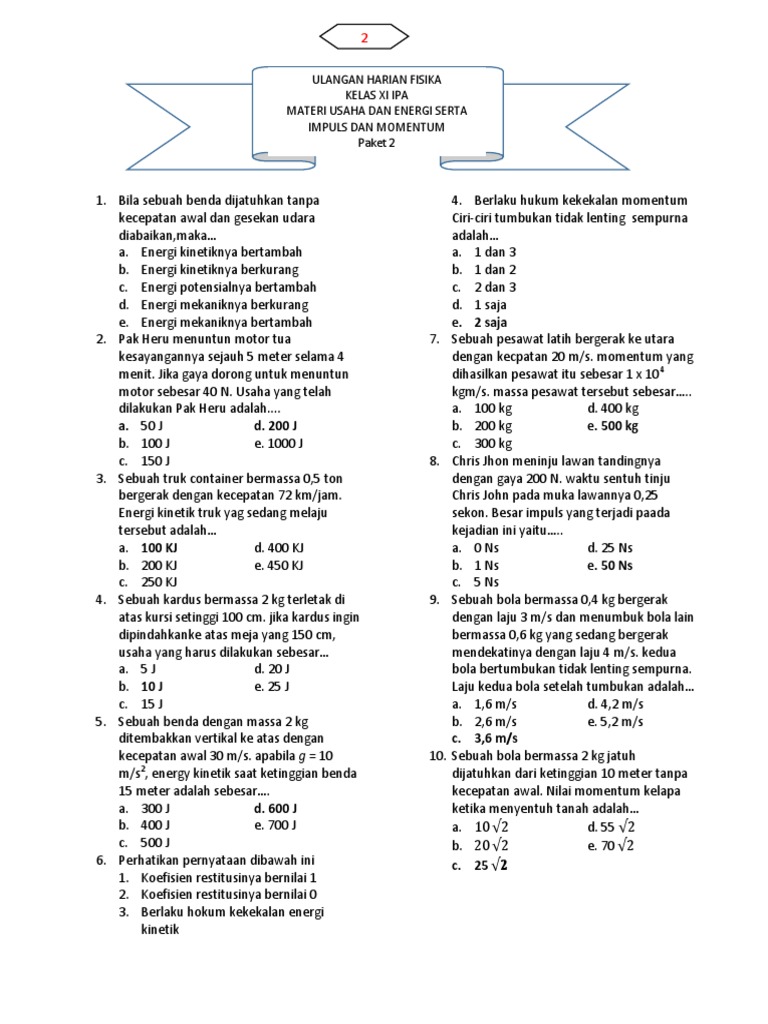 Soal Usaha Dan Energi Kelas Xi