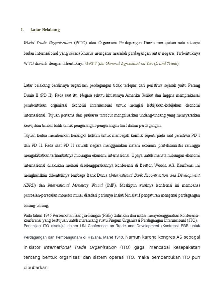 Daftar Sub Komite Teknis. Rumusan Masalah Berdasarkan latar belakang tersebut maka rumusan masalah dalam makalah ini adalah sebagai berikut. Latar belakangnya WTO tidak terlepas dari peristiwa sejarah yaitu perang dunia dua PD II.