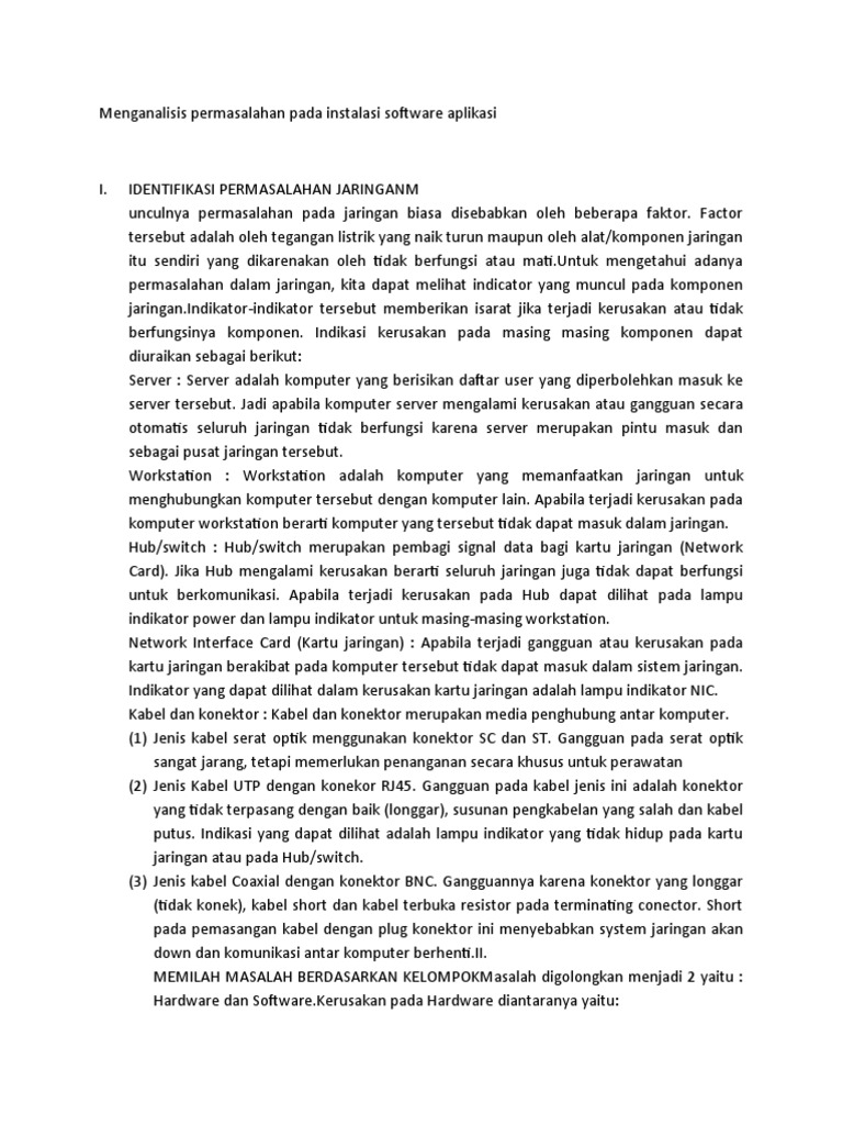 Download 310 Menganalisis permasalahan pada instalasi software aplikasidocx. SMK NEGERI 6 MALANG Kompetensi Keahlian. Ada yang melewati tahap instalasi yang singkat dan sederhana namun juga ada tahap instalasi yang memerlukan product key dari aplikasi tersebut.